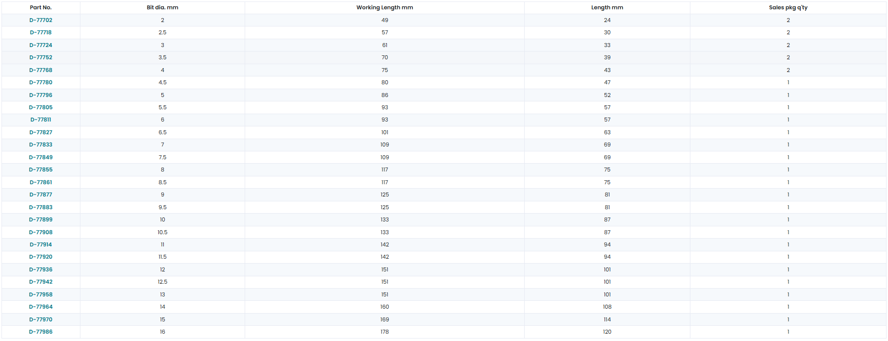 มีขนาดให้เลือกหลากหลาย ช่วยให้ผู้ใช้งานสามารถเลือกดอกสว่านที่เหมาะสมกับงานได้อย่างถูกต้อง