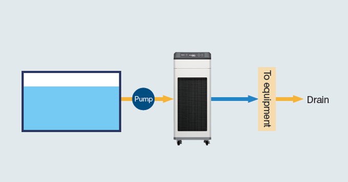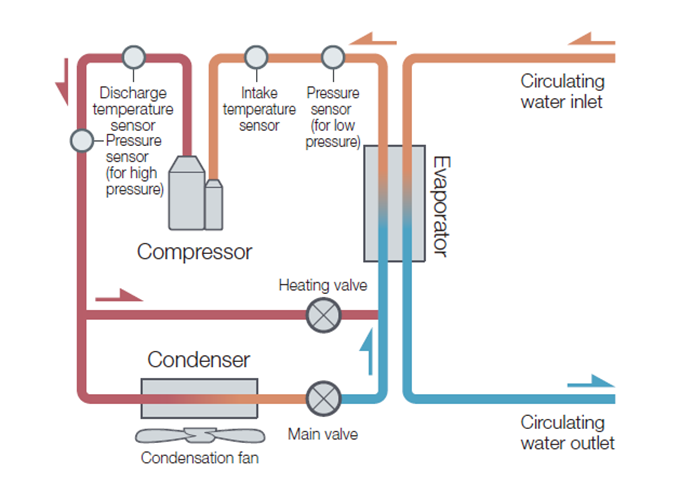 วิธีการทำความเย็นที่ให้การไหลเวียนของน้ำเย็นสัมผัสกับสภาพแวดล้อมภายนอกเรียกว่า ‘วงจรเปิด’ (Open Circuit) เมื่อใช้ชิลเลอร์ที่มีปั๊ม/ถังในตัวกับระบบวงจรเปิด ด้านโหลดจำเป็นต้องปิดผนึก หรือทำการหล่อเย็นแบบอ้อมผ่านเครื่องแลกเปลี่ยนความร้อนแต่ชิลเลอร์ซีรีส์ PCU-F ใช้โครงสร้างแบบไม่มีปั๊มและไม่มีถัง ทำให้สามารถใช้งานในวงจรเปิดได้โดยไม่ต้องมีมาตรการเพิ่มเติมใด ๆ ซึ่งช่วยให้การออกแบบระบบทำความเย็นง่ายขึ้น และเพิ่มความยืดหยุ่นในการใช้งานได้อย่างมาก