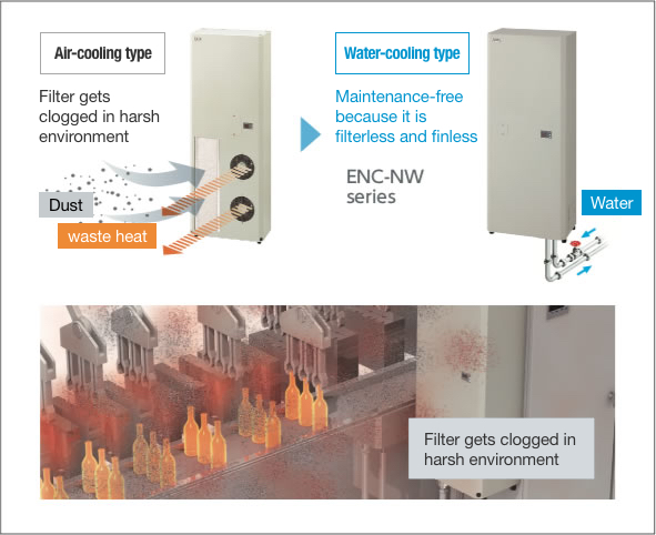 ในโรงงานที่มีสภาพการผลิตรุนแรง แผ่นกรองมักเกิดการอุดตันได้ง่าย และยูนิตทำความเย็นแบบระบายความร้อนด้วยอากาศมักต้องใช้การบำรุงรักษามาก แต่คูลเลอร์แบบระบายความร้อนด้วยน้ำไม่ต้องใช้แผ่นกรองและไม่ต้องบำรุงรักษา ช่วยลดงานบำรุงรักษาและตัดค่าใช้จ่ายในการเปลี่ยนแผ่นกรองออกไป