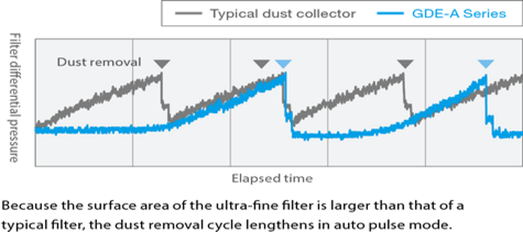 ซีรีส์ GDE-A ใช้พัลส์เจ็ตในการกำจัดฝุ่นออกจากไส้กรองแบบอัตโนมัติ สามารถเลือกโหมดที่เหมาะสมที่สุดตามสภาพแวดล้อมการใช้งานได้