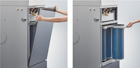 การเปลี่ยนไส้กรองของซีรีส์ GDE-A สามารถทำได้โดยไม่ต้องใช้เครื่องมือใด ๆเป็นงานที่ง่ายเพียงแค่เปิดประตูและดึงไส้กรองออกเท่านั้น จึงไม่ก่อให้เกิดความลำบากหรือภาระต่อผู้ปฏิบัติงาน